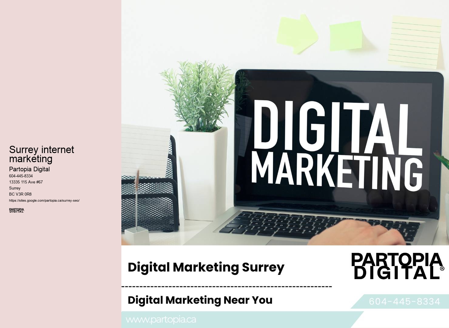 Our solutions include advanced link-building techniques. They make every like, share, and comment count, driving traffic to your site and elevating your brand in Surrey's competitive market. Partopia Digital's team produces high-quality, informative, and engaging content that resonates with your audience.